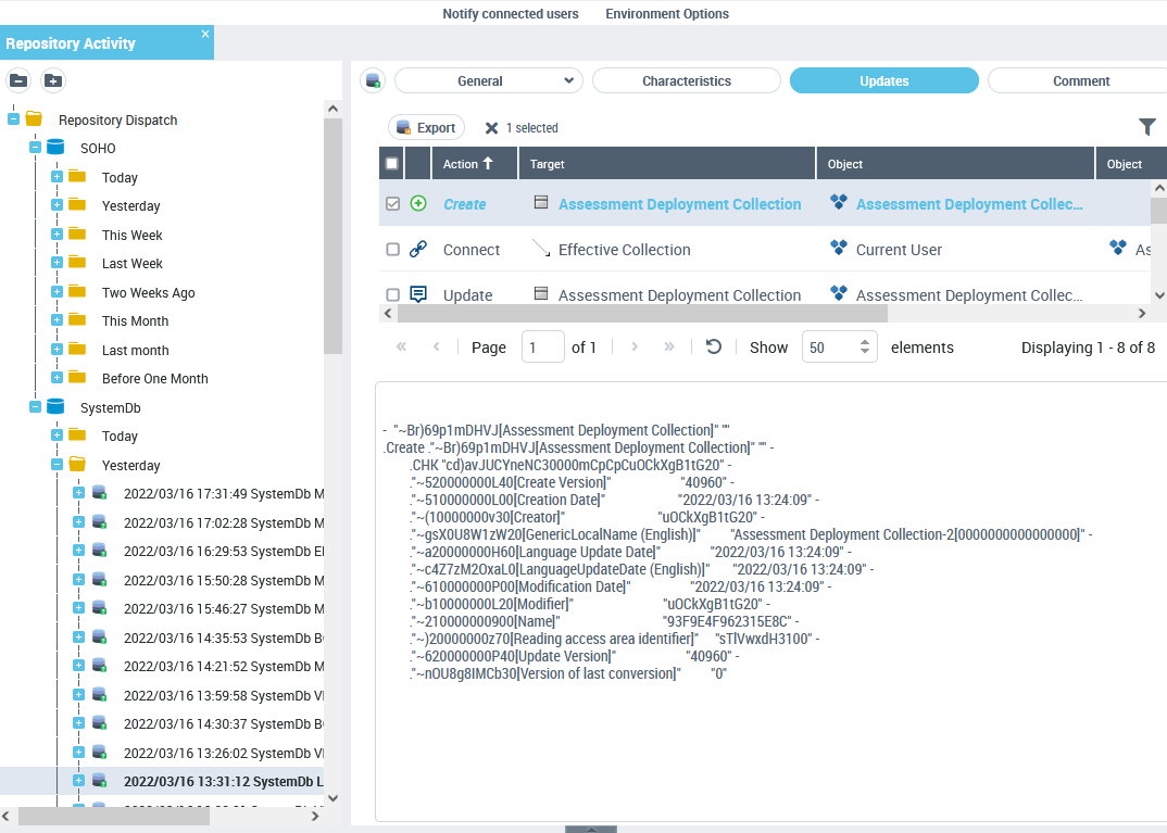 PLATFORM - Administration (Web) > Workspaces > Managing Updates > Displaying Updates Dispatched in the Repository