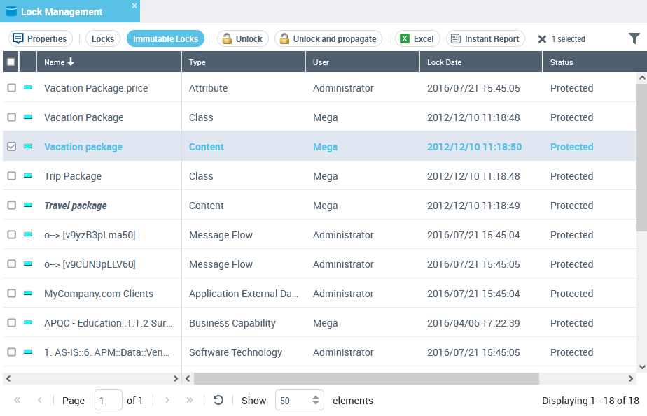 4. (Optional) To sort immutable locks according to column, click the column header.