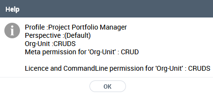 The permission of the Org-Unit MetaClass is CRUD, the command line of the Process Functional Administrator profile for the Org-Unit MetaClass is not restrictive: CRUDS.