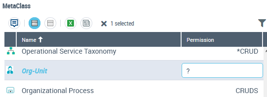 To return to the default value of the permission on the MetaClass, enter the character *.
