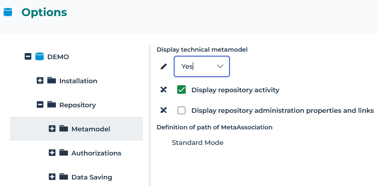 With HOPEX Administration (Windows Front-End) you can prohibit modification of any option at a lower level than your current level.
