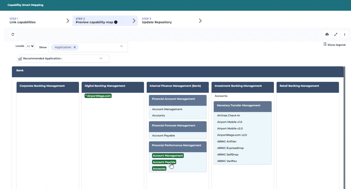 4. Cliquez sur l'étape 2 pour prévisualiser la carte de capacité métier.