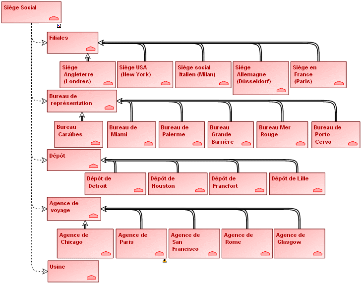 L'arbre de sites est un diagramme de MEGA Architecture on HOPEX qui permet une description arborescente d'un site. Focalisé sur un site particulier, ce type de diagramme permet une représentation synthétique de sa décomposition en sous-sites.