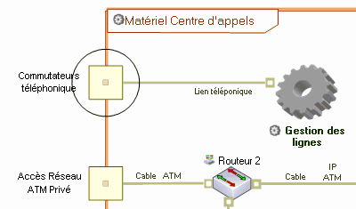 Par exemple, dans le cas du centre de support, le canal de communication "Ligne téléphonique" relie le port de communication "Accès téléphone" à l'Infrastructure générale du centre de support.