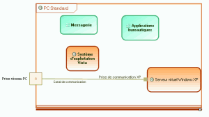 Un PC standard est équipé d'un système d'exploitation Vista sur lequel tournent des applications bureautiques et de messagerie.