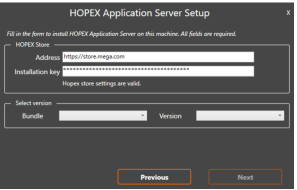 The message “HOPEX Store settings are valid” appears if the key is correct.