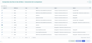 • La comparaison des liens et des attributs, qui fournit une vue détaillée des changements dans les liens et les attributs entre deux révisions d'un processus.