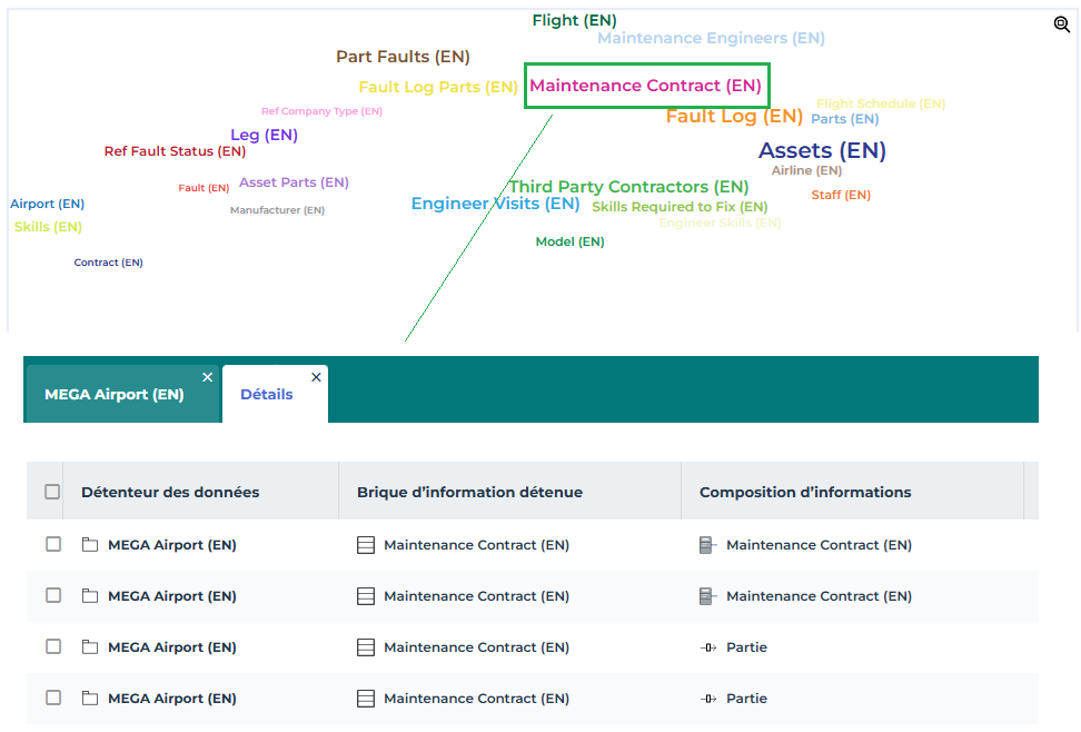 Ci-dessous vous pouvez voir les liens entre le domaine "Maintenance" et le domaine "Flight Ops".