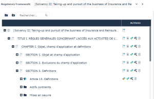 Parce qu'une réglementation peut contenir beaucoup de chapitres, vous pouvez indiquer précisément à quelle section ou à quel article sont soumis des objets et pour lesquels associer des règles métier.