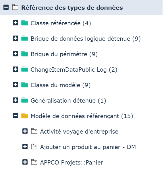 En ouvrant l'explorateur sur ce paquetage de type de données, vous pouvez voir qu'il est référencé par plusieurs modèles de données.