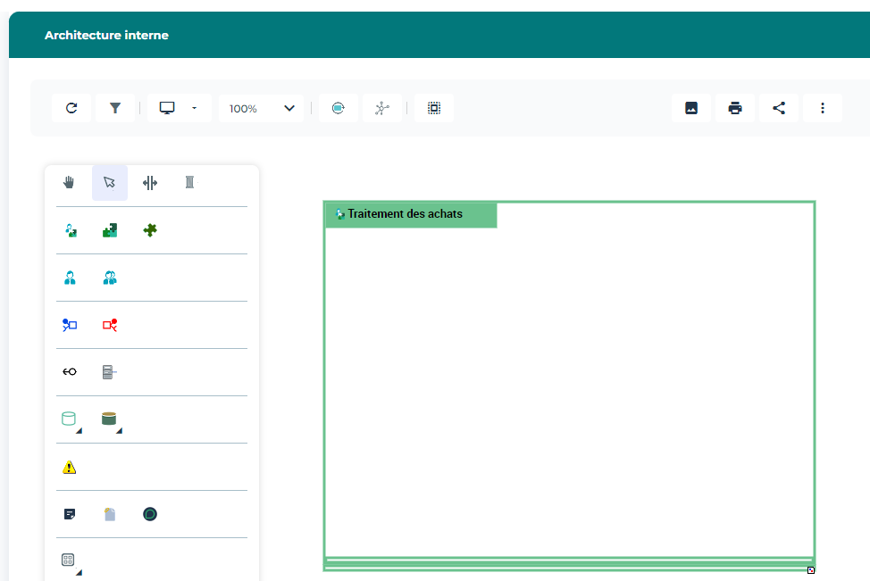 Le diagramme s'ouvre dans la fenêtre d'édition. Vous êtes dans l'éditeur graphique de HOPEX.