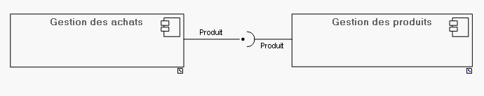 Exemple : le composant « Gestion des achats » a besoin pour son fonctionnement de l'interface « Produit » pour pouvoir associer une commande d'achat aux produits commandés.