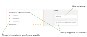 Il s'agit du "Titre" de votre question. C'est le texte qui apparaît à l'utilisateur lorsqu'il reçoit le questionnaire. Le nom que vous trouvez dans les propriétés de la question est un nom technique qui apparaît si aucun titre n'a été saisi.