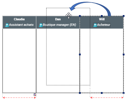 *Alternative : dans une piscine horizontale, si vous modifiez les deux dimensions d'un Participant, la hauteur des autres participants est aussi ajustée. Voir Modifier la dimension d'un seul participant d'une piscine.