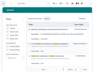 Exemple : les filtres obtenus sur les résultats d'une recherche plein texte sur tous types d'objets qui contiennent "gestion".
