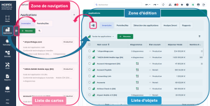 • une liste d'objets affichée dans la zone d'édition via un menu de navigation