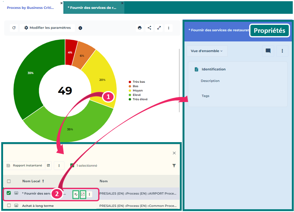 Ex. : dans une Matrice, cliquez sur l'objet dans l'en-tête d'une colonne/ligne.