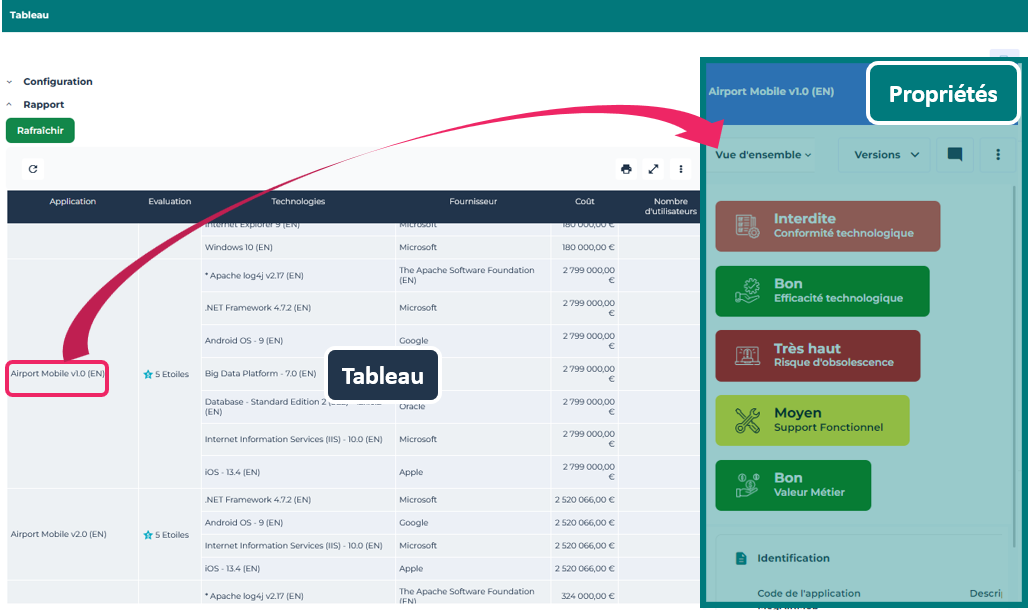 Pour afficher les propriétés d'un objet présenté dans un rapport :