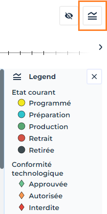 Le bouton Légende donne la signification des indicateurs et leur couleurs.