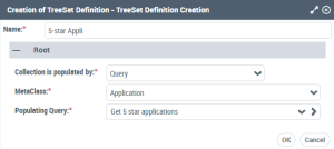 - two TreeSet Properties to the "5-star Appli-Root" TreeSet Collection: the "Cost" and "Current state" MetaAttribute value of the Application.