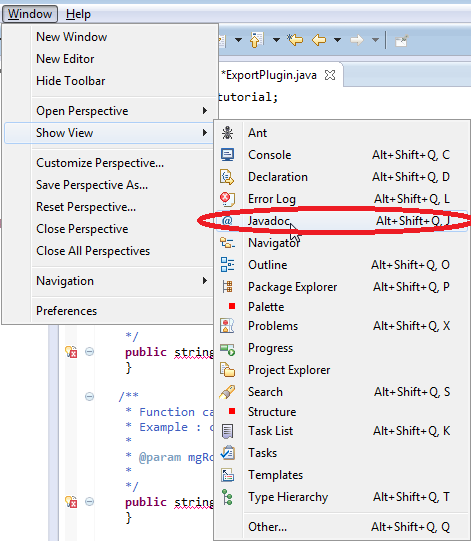 Javadoc help can be permanently displayed in a dedicated window. To display this window, select Window > Show View > Javadoc: