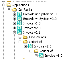 For varied object, a Variant Of folder will be displayed in the navigation trees showing the variable concept instances.