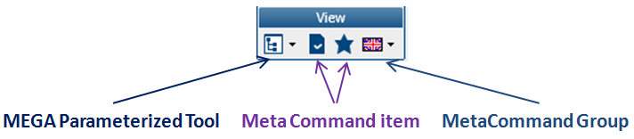 13 and create and/or connect all the components of the MetaCommand Group (example: "View"). Example: Connect the MetaCommand Items "Favorites" and "Properties" and the MEGA Parameterized Tools "Navigation Trees Manager" and "Languages".