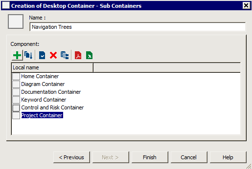 . The first step of a new Creation of Desktop Container wizard appears: Usage. This enables definition of use of the first Container of the "Navigation Trees" Container.