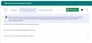 Vous pouvez décrire le périmètre de la violation de données, autrement dit les entités juridiques, les départements et les traitements qui sont touchés par la violation de données.