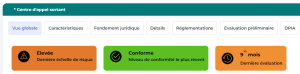 L'information affichée prend en compte les évaluations réalisées au cours des évaluations préliminaires et des analyses d'impact (DPIA). Ce tableau de bord est vide jusqu'à ce que l'équipe Privacy commence l'évaluation du traitement.