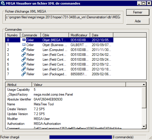 • d'un export au format XML MEGA, la fenêtre de visualisation d'un fichier XML de commandes apparaît.