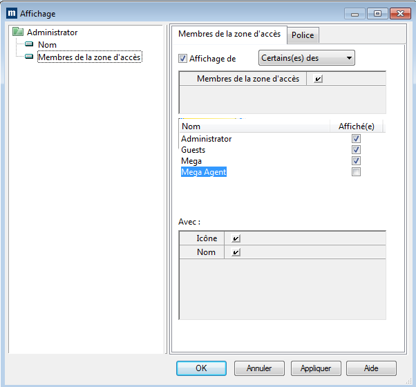 Pour afficher aucun ou tous les Membres de la zone d'accès, sélectionnez