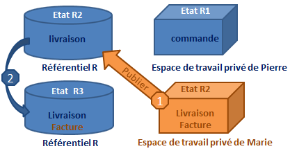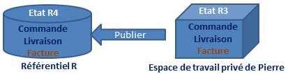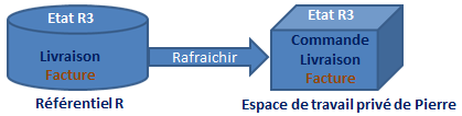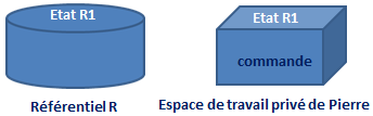 • Pierre ouvre un espace de travail privé, sa vision du référentiel est celle de l'état "n" (R1).