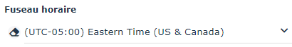 Ex. : sélectionnez "(UTC-05:00) Eastern Time (US & Canada)" pour définir les heures en heure locale à New-York.
