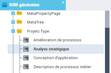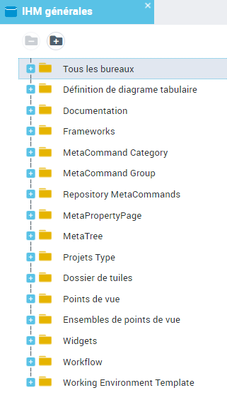 Vous pouvez gérer les accès aux IHM générales pour un profil. Les IHM générales sont classées par catégorie, comme :