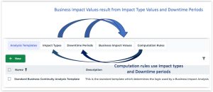 A business continuity analysis template is supplied as standard: “Standard Business Continuity Analysis Template”.
