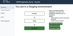 From the Staging environment, you can validate the scheduled Move to Staging. If needed, you also have the option to modify or cancel the proposal.