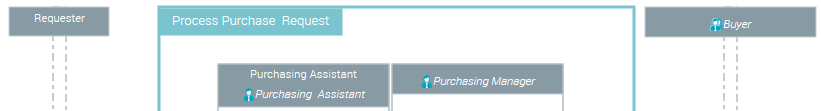 Example: The "Analyze Purchase Request" operation in the "Process Purchase Request" process, handled by the Purchasing Manager, is assigned to the Purchasing Assistant when the manager is absent. To represent this, we assign org-units "Purchasing Manager" and "Purchasing Assistant" org-units to the same participant.