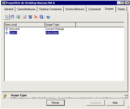 When a (MEGA Parameterized Tool) produces an item of information (example: change of state), it can dispatch this event in a Scope (this Scope is saved in the Desktop Container). Only the Desktop Containers or MEGA Parameterized Tools subscribers to this Scope will take account of this information to update their display as a function of the event (Scope), or execute another action.