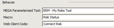 • MEGA Parameterized Tool and select the MEGA Parameterized Tool that will implement the command (example: "ERM – Risk Consequences").