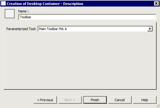 Having defined commands of each group of commands of the desktop toolbar, you must configure each command (MetaCommand Group/MetaCommand Item).
