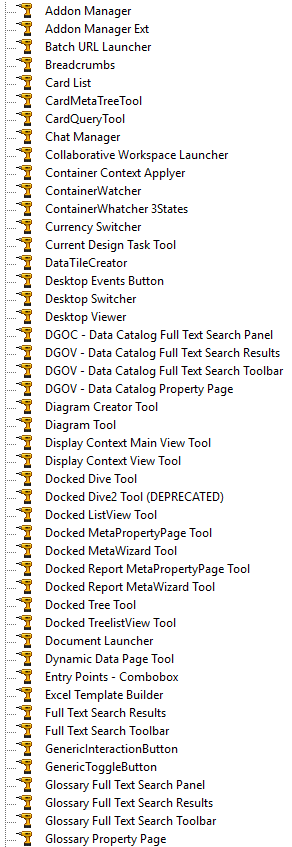 Tools (MEGA Tools) enable viewing and/or integration with repository data. A MEGA Tool cannot be used directly in a desktop, but only via a desktop component (MEGA Parameterized Tool).