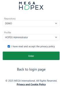 2. Click your own log in button, or use the log in managed by HOPEX:
