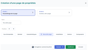 2. Dans la barre de menus des pages de propriétés, cliquez sur Nouvelle page.
