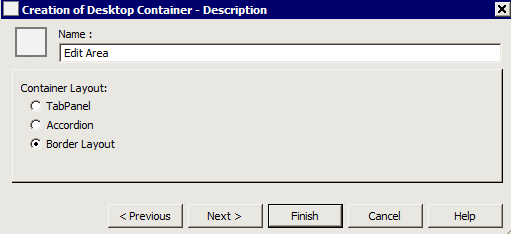 2. Enter the Name of the Container of Border Layout type (example: «Edit Area").