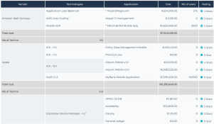 You can add two break rows after each group (Vendor), and for each vendor, you can display the number of Technologies and the sum of costs.