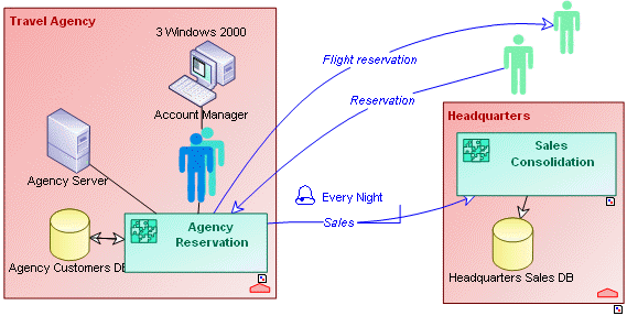 You can also add to the diagram technical infrastructure elements such as the servers hosting the applications and databases, and the network connecting the servers with agency workstations.