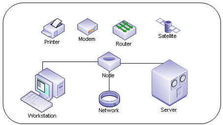 A node is described by its hardware type: router, printer, modem, etc. You can also add new types of hardware to the predefined node types.