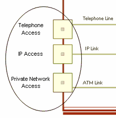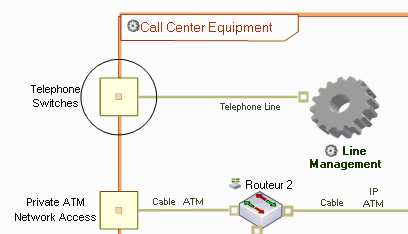 For example, in the case of a support center, the "Telephone Line" communication channel connects the "Telephone Access" communication port to the general infrastructure of the support center.