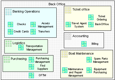 A second area, called the "Back Office", contains the applications used for customer service that do not require the customer's presence.